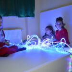 Sala Doświadczania Świata jest miejscem, gdzie podopieczni mają możliwość w innowacyjny i ciekawy sposób stymulować poszczególne zmysły,